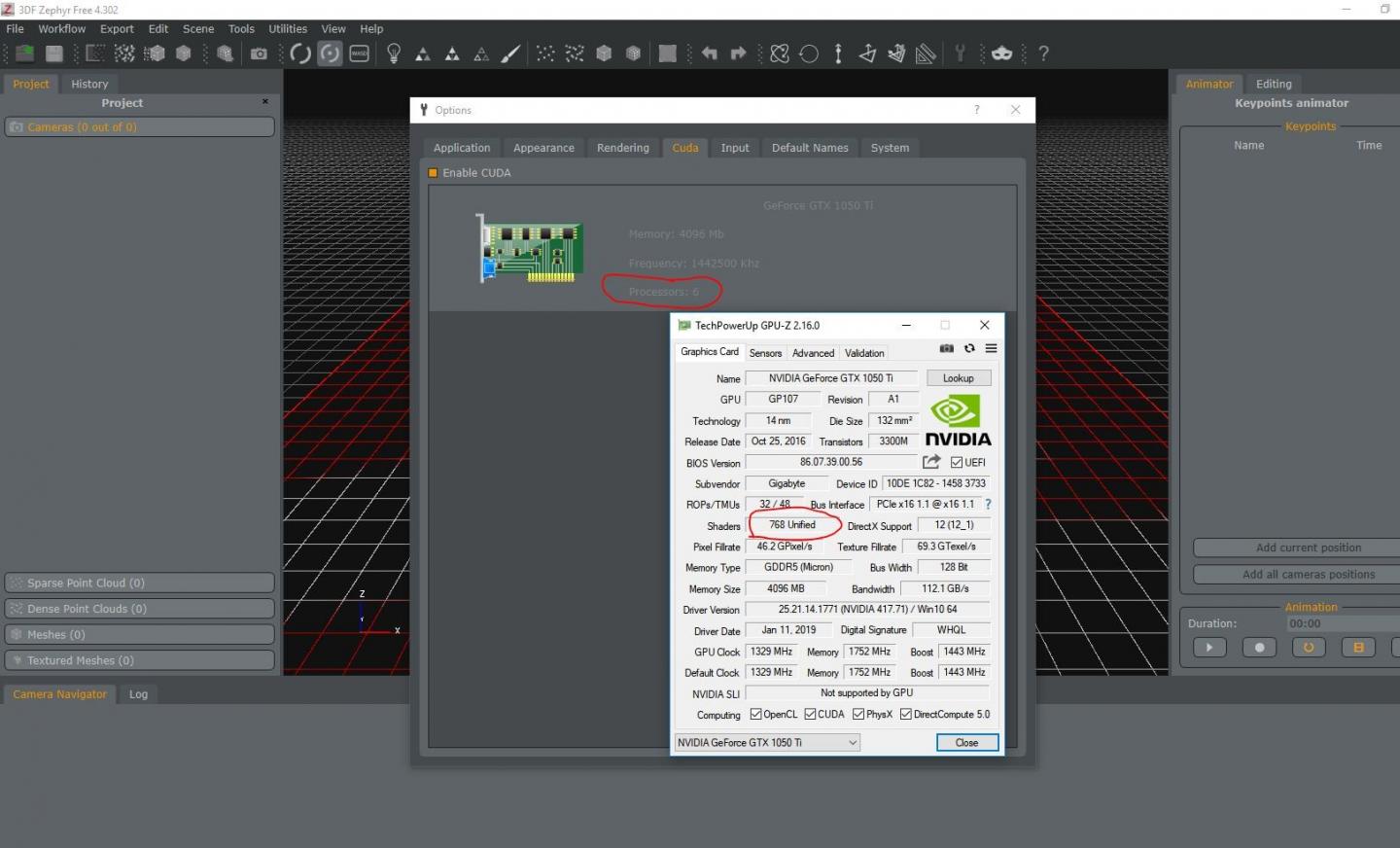 Hello everyone, i have this small issue.... I have a cuda Geforce GTX 1050ti card and cuda drivers installed... But zephyr sees only 6 processors from 768...? Why? I run CPU Z and it shows normally CUDA enabled and 768 processors. Any ideas if this is normal?