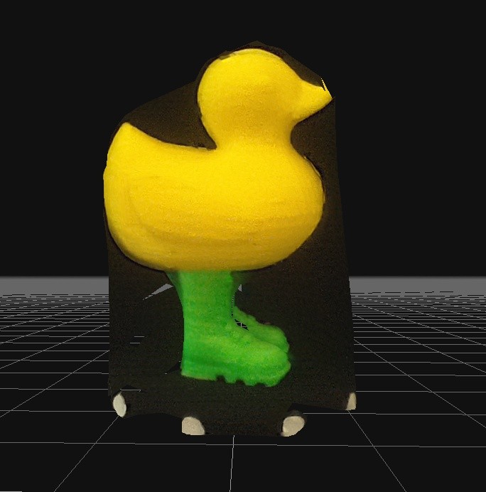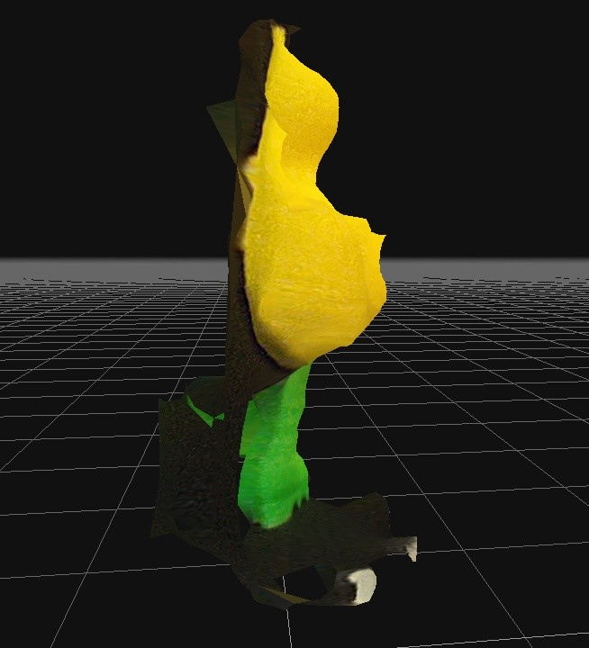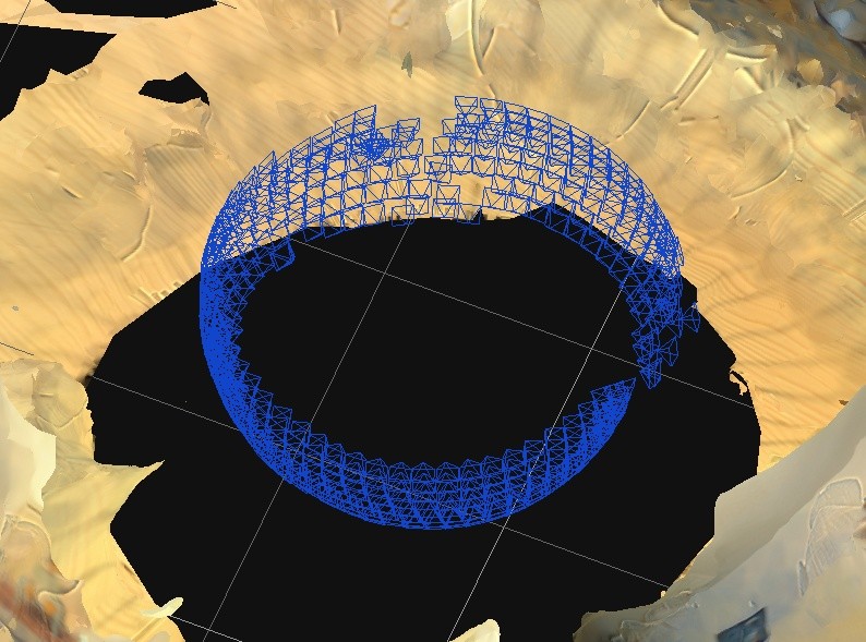 The final renderings do a great job on the background (actually a mirror image) but the subject in the center of the scanner is missing, and all of the blue camera position symbols are facing outward.