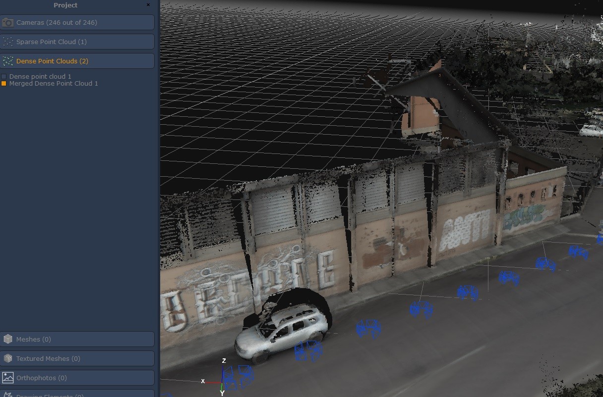 1) Ho trascinato dentro l'area di lavoro 2 .las e come vedi dall'immagine le nuvole dense sembrano avere l'origine integrata nel file e visibilmente appaiono correttamente allineate, ma Zephyr le rileva come "oggetti non strutturati".